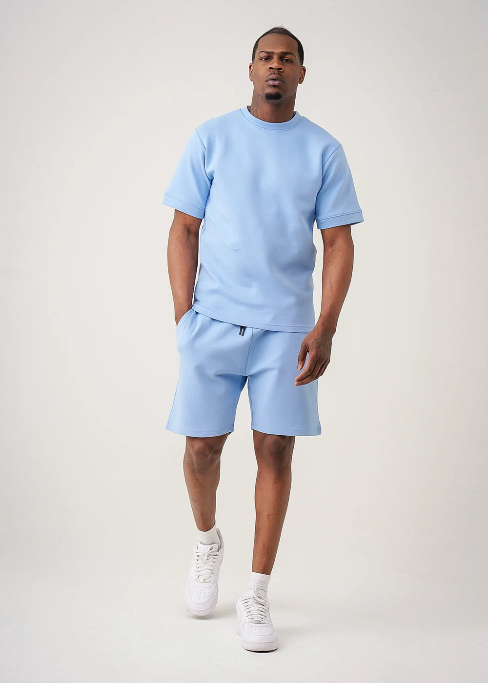 12 OZ Sky Blue Heatguard Interlock Lycra T-Shirt Short Set