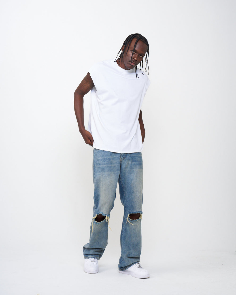 Introducing our Sleeveless 10oz Oversized Garment Dye French Terry Distressed T-Shirt, where comfort meets urban edge. Crafted from heavyweight French Terry for lasting softness and durability, this sleeveless version offers a modern twist. Each shirt undergoes meticulous garment dyeing, resulting in rich, vintage-inspired colors. Distressed detailing adds a rugged yet cool vibe. Perfect for any occasion, this tee promises style and comfort with its 100% cotton construction and is conveniently machine washable.